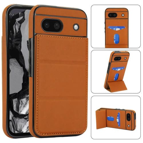 Funda de Cuero Google Pixel 8A con Tres Pliegues y Ranura para Tarjetas (Marrón)
