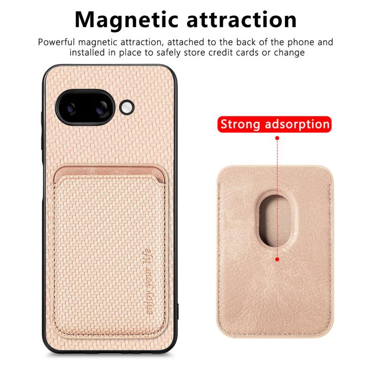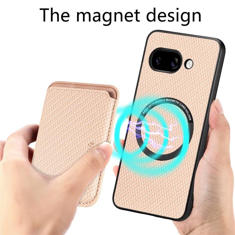 Funda de Cuero Fibra de Carbono con Tarjetero Magsafe para Google Pixel 9A (Caqui)
