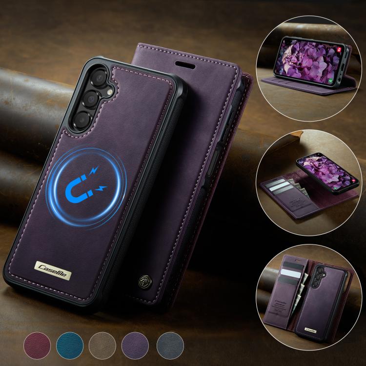 Funda de cuero desmontable con bloqueo RFID magnético CaseMe C49 para Samsung Galaxy A15 (morado)