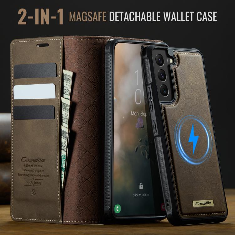 Funda de cuero desmontable con bloqueo RFID magnético para Samsung Galaxy S22 5G CaseMe C49 (café)