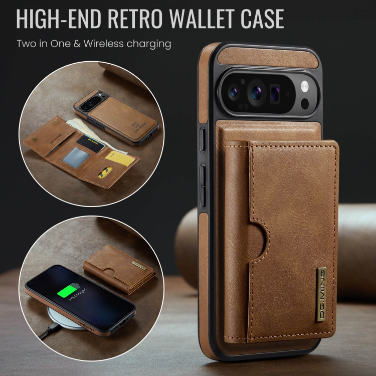 Funda de Cuero Extraíble con Tarjetero RFID Tres Pliegues Dg.Ming M6 para Google Pixel 9 Pro XL (Marrón)