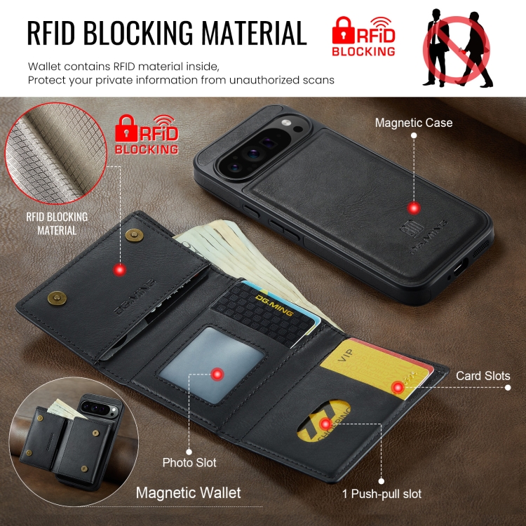 Funda de Cuero Extraíble Dg.Ming M6 con Tarjetero Rfid para Google Pixel 9 Pro XL (Negro)