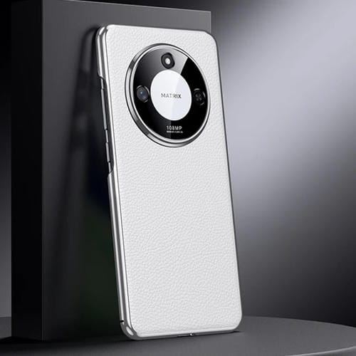 Funda de Cuero Genuino con PC para Honor X60 (Blanca)