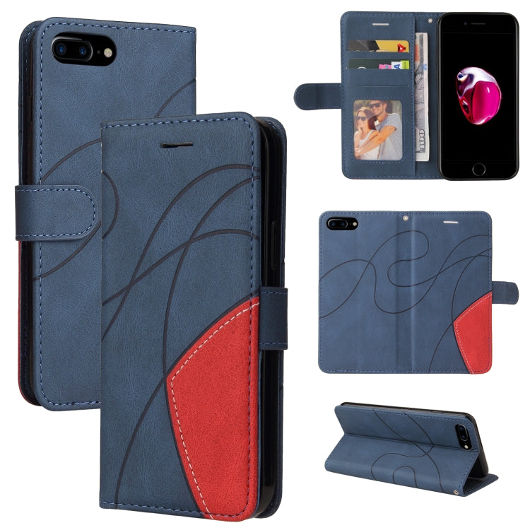 Funda para iPhone 8 Plus / 7 Plus Cuero Horizontal Doble Color con Soporte y Ranuras (Azul)