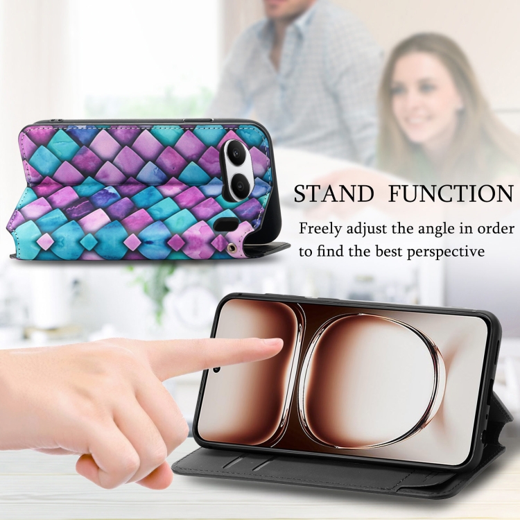 Funda de Cuero Magnética Caseneo para OnePlus Nord 4 (Escamas Moradas)