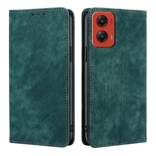 Funda de Cuero Magnética con Cepillo Antirrobo RFID para Motorola Moto G Stylus 5G (2024) (Verde)