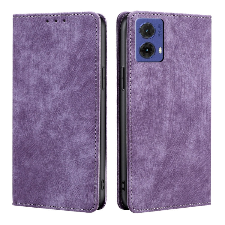 Funda de Cuero Magnética con Cepillo Antirrobo Rfid para Motorola Moto G85 5G (Morado)