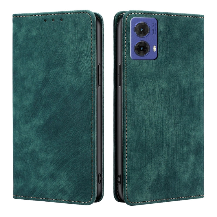 Funda de Cuero Magnética con Cepillo Antirrobo RFID para Motorola Moto G85 5G (Verde)