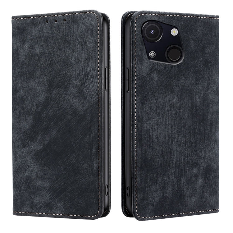 Funda de Cuero Magnética con Cepillo Antirrobo RFID para Itel A50C 4G (Negra)
