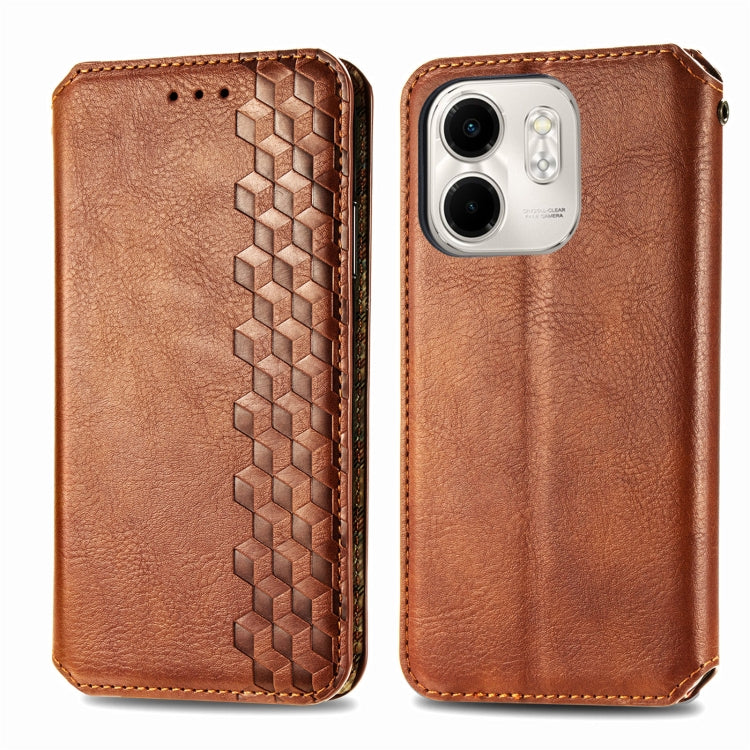 Funda de Cuero Magnética con Diseño de Cuadrícula Cúbica para Infinix Smart 9 (Marrón)