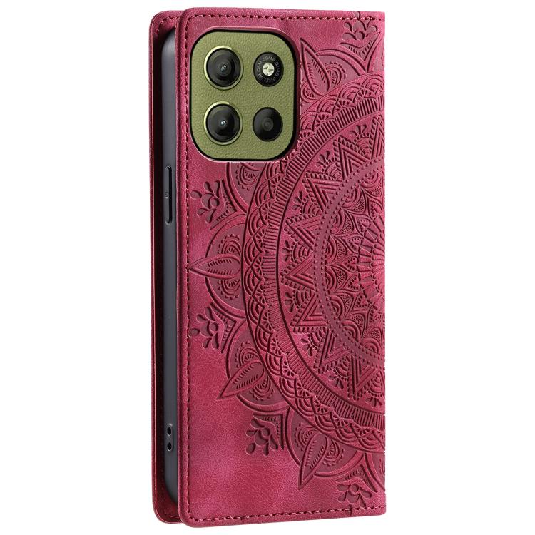 Funda de Cuero Magnética con Relieve Totem para Motorola Moto G15 (Rojo)