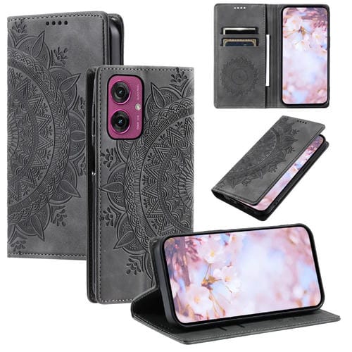 Funda de Cuero Magnética con Relieve Totem para Motorola Moto G55 (Gris)