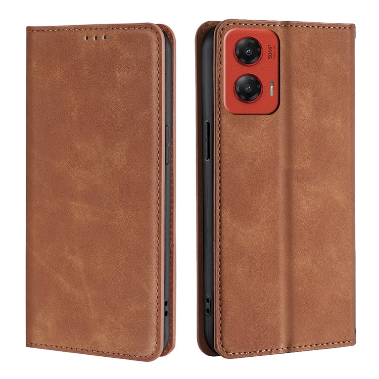 Funda de Cuero Magnética con Tacto de Piel para Motorola Moto G Stylus 5G (2024) (Marrón Claro)