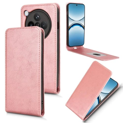 Funda de Cuero Magnética con Tapa Vertical para Teléfono Oppo Find X8 (Oro Rosa)