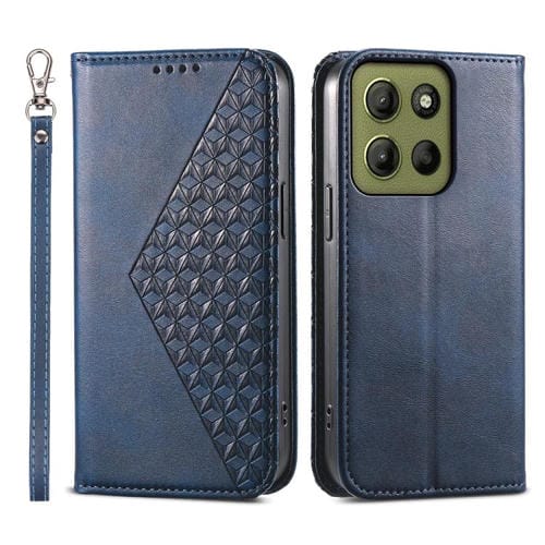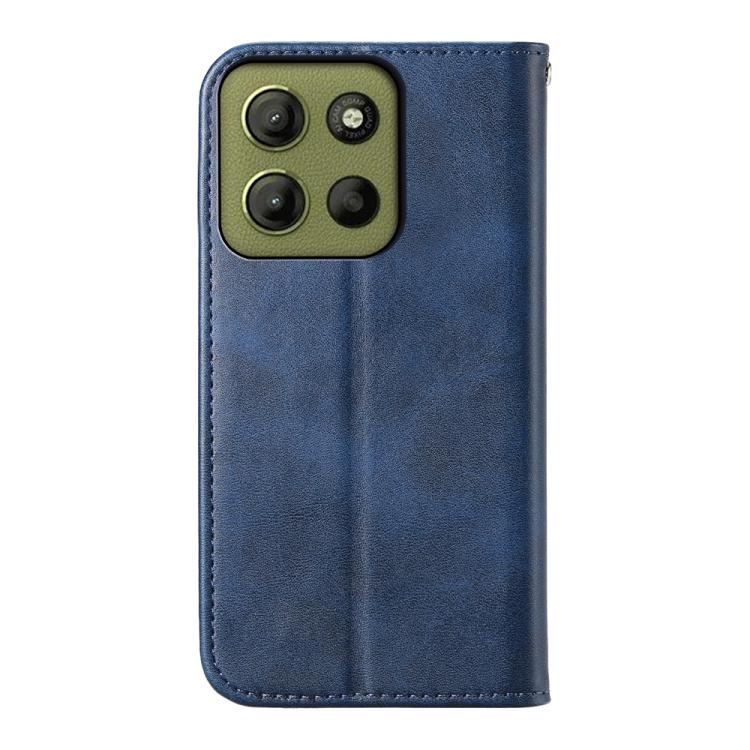 Funda Cuero Magnética Motorola Moto G15 Textura Becerro Cuadrícula Cúbica (Azul)