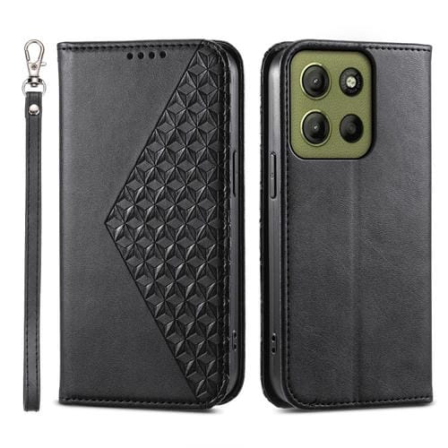 Funda Cuero Magnética Motorola Moto G15 Textura Piel Becerro Cuadrícula Cúbica (Negro)