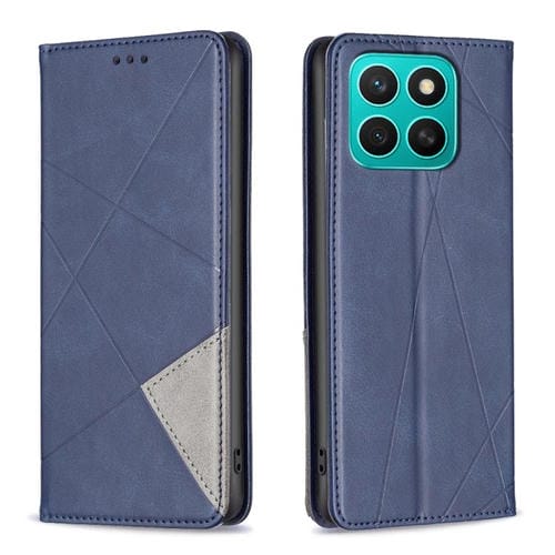 Funda de Cuero Magnética para Honor X8C 4G con Textura de Rombos (Azul)