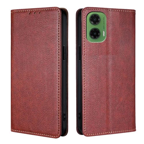 Funda de Cuero Magnética para Motorola Moto G35 5G con Acabado Brillante (Marrón)