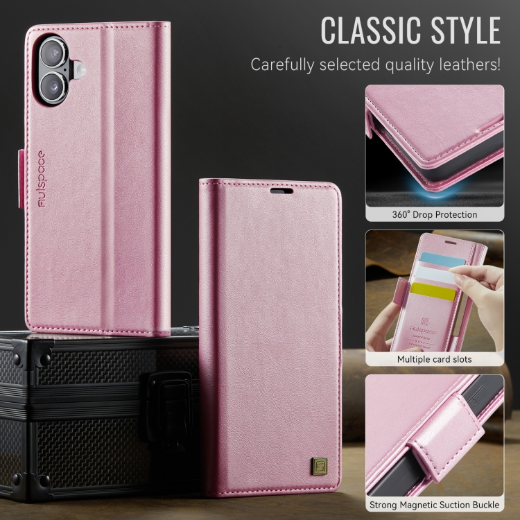 Funda de Cuero Magnética Rfid Magsafe Autspace A11 para iPhone 16 (Oro Rosa)