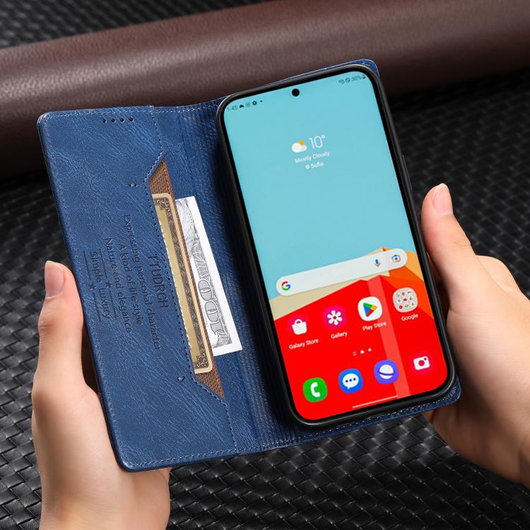 Funda de cuero magnético con textura retro RFID TTUDRCH para Samsung Galaxy A17 5G (azul)