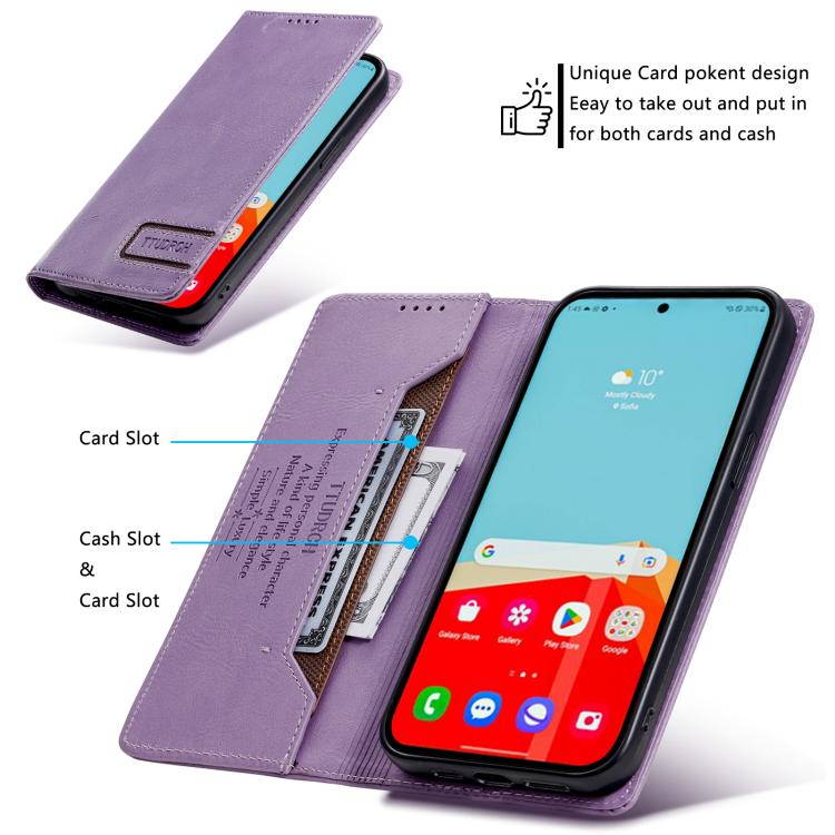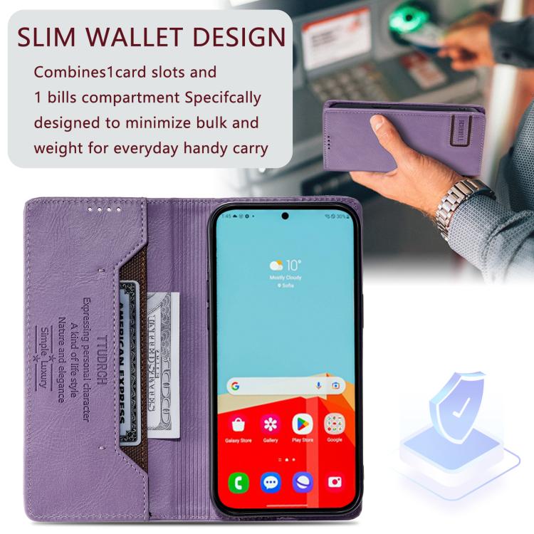 Funda de cuero magnético con textura retro RFID TTUDRCH para Samsung Galaxy A17 5G (morado)