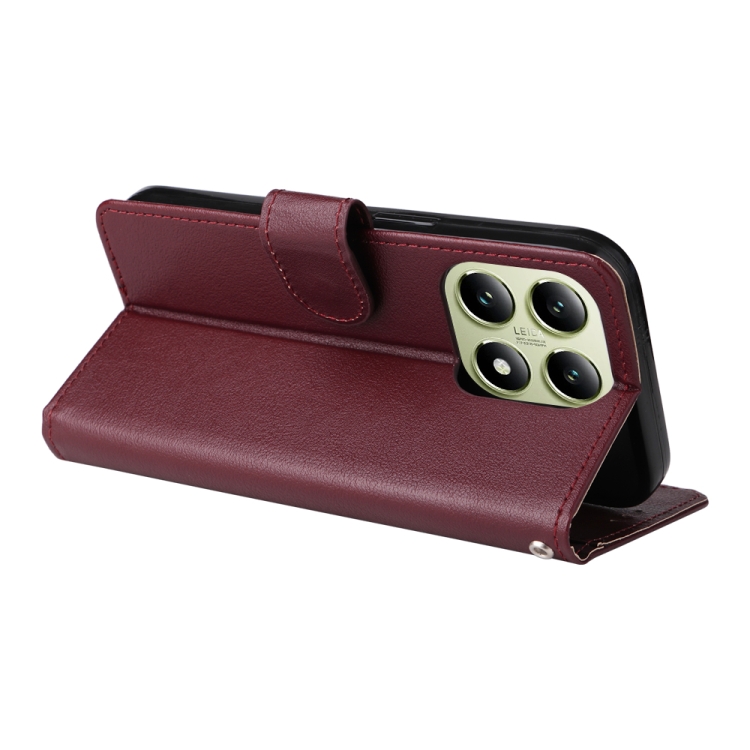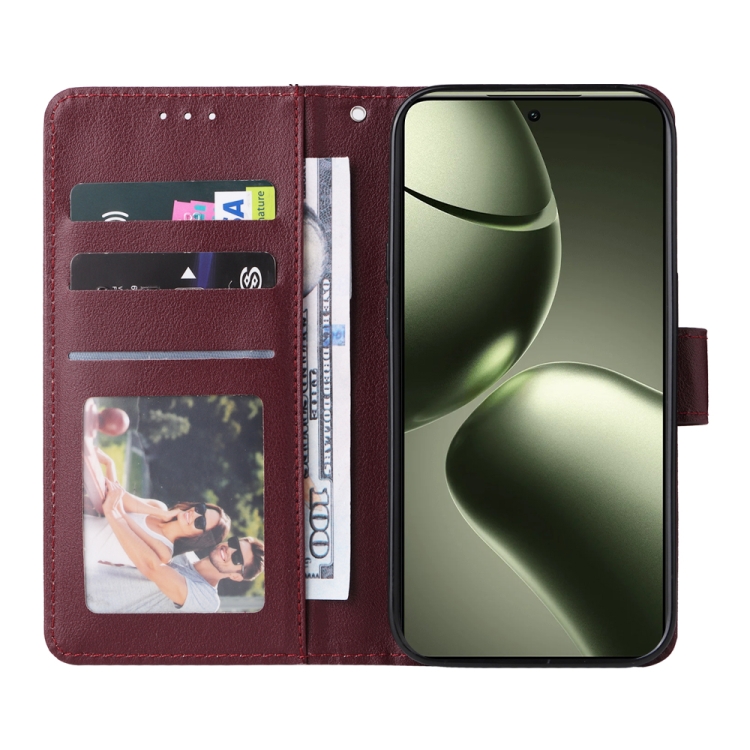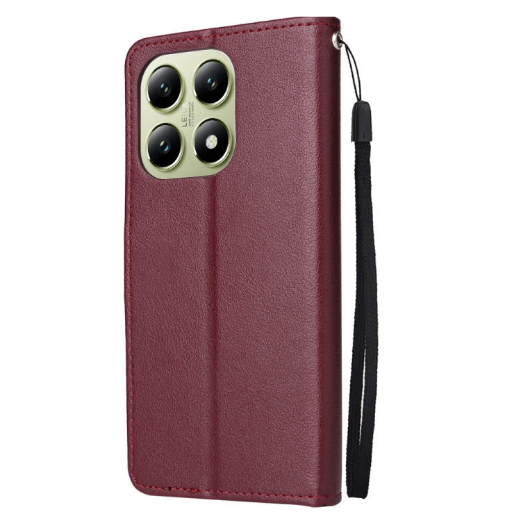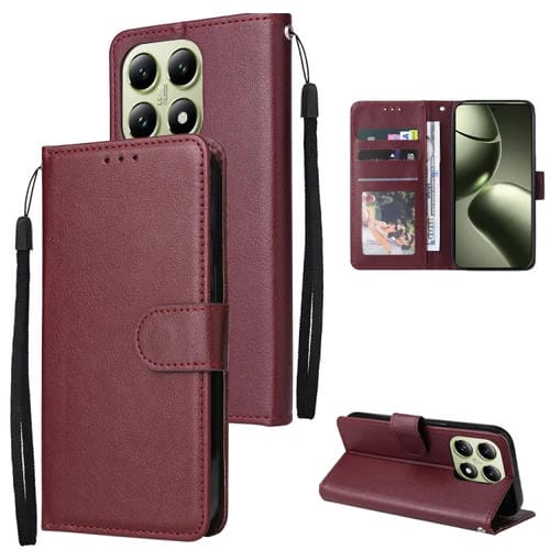 Funda de Cuero Multifuncional para Teléfono Xiaomi 14T Pro con 3 Ranuras para Tarjetas (Rojo Vino)