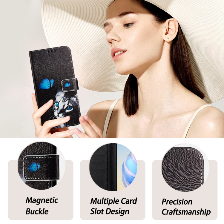 Funda de Cuero para iPhone 16 con Diseño de Dibujo Artístico en Color (Gato Mariposa)