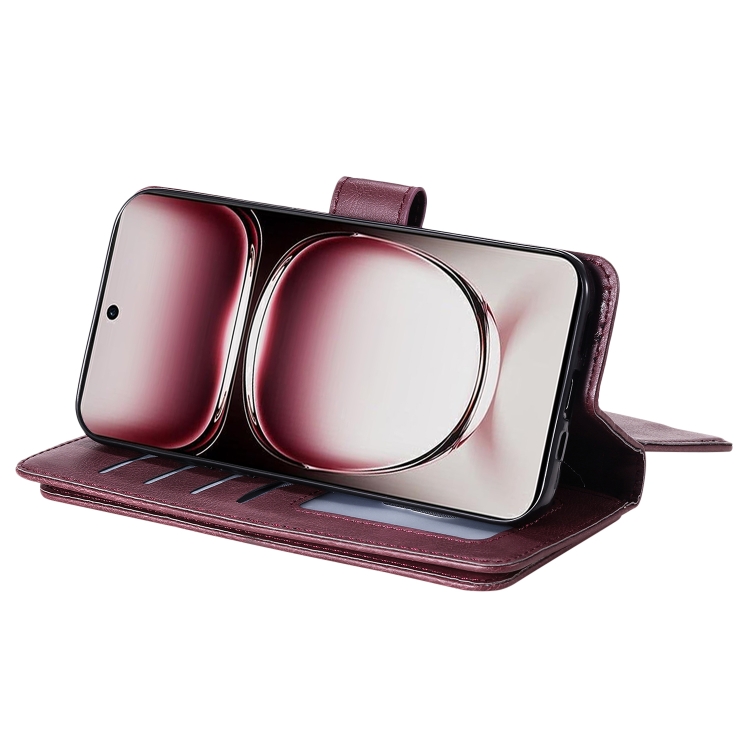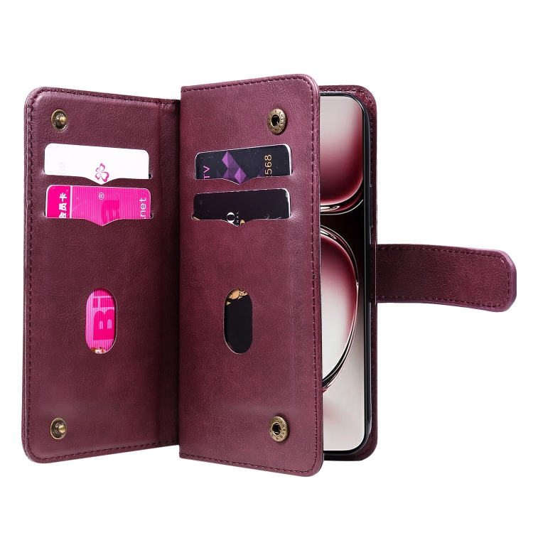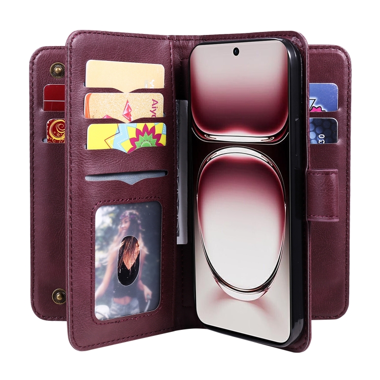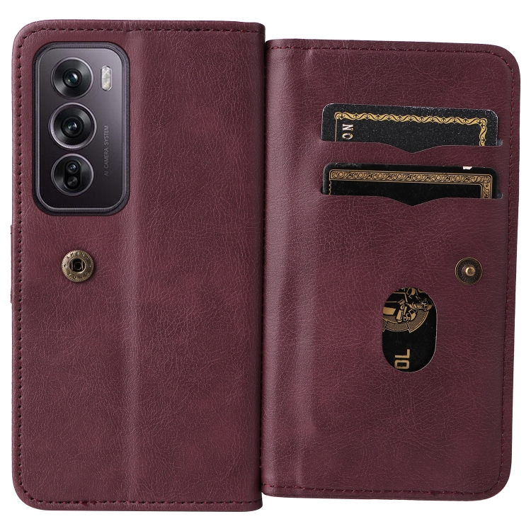Funda de Cuero para Teléfono con 10 Ranuras para Tarjetas y Billetera Multifunción Global para Oppo Reno12 Pro (Clarete)