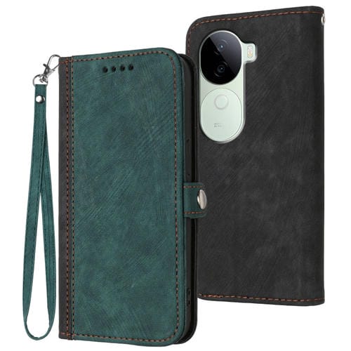 Funda de Cuero para Teléfono con Correa de Mano y Hebilla Lateral Doble Plegable para Vivo Iqoo Z9S/V40E (Verde Oscuro)
