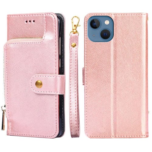 Funda de Cuero para Teléfono iPhone 14 con Cremallera (Oro Rosa)