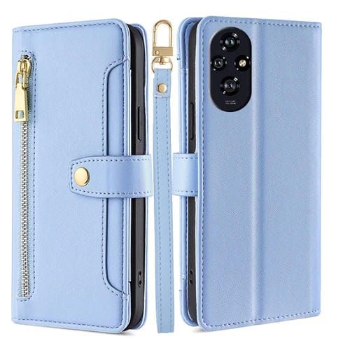 Funda de Cuero con Cremallera y Textura de Oveja para Honor 200 5G (Azul)