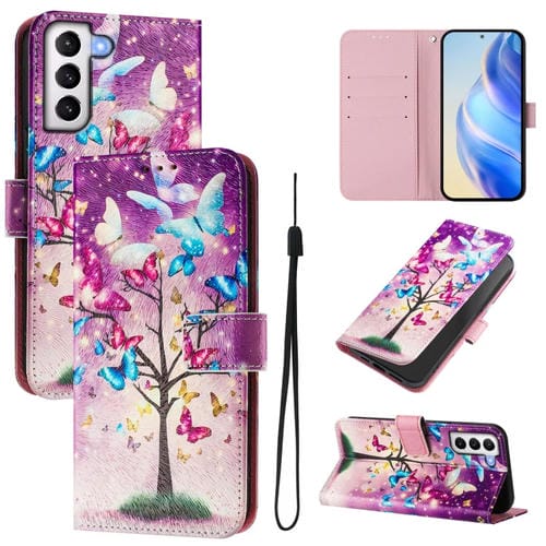 Funda de Cuero para Teléfono Samsung Galaxy S21+ 5G con Patrón Dibujo Artístico Rama de Mariposa