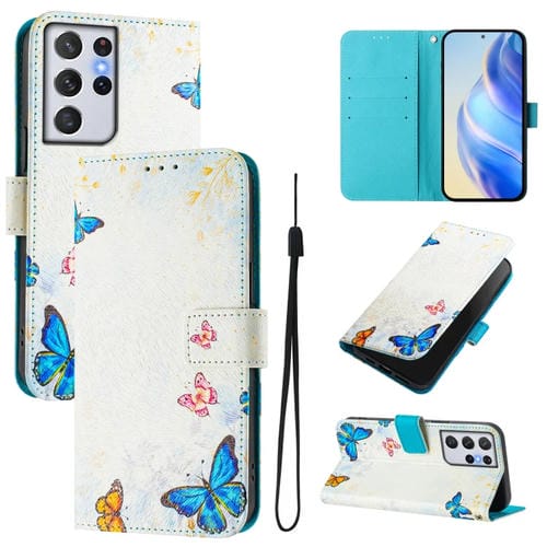 Funda de Cuero para Teléfono Samsung Galaxy S21 Ultra 5G Patrón Dibujo Artístico (Casa de Mariposas)
