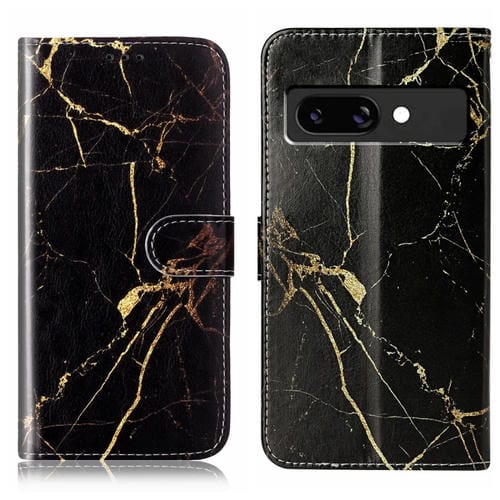 Funda de Cuero para Google Pixel 9A con Patrón Mármol y Dibujo de Colores (Mármol Negro y Dorado)