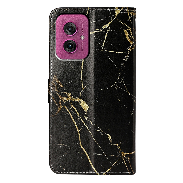 Funda de Cuero para Motorola Moto G55 con Patrón Mármol y Dibujo de Colores (Negro y Dorado)