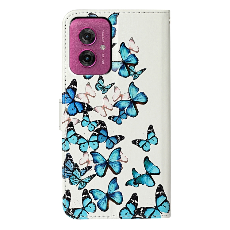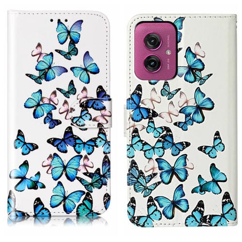Funda de Cuero para Motorola Moto G55 con Patrón Mármol y Mariposas Azules