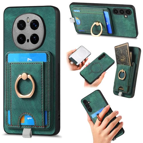 Funda de Cuero con Tarjetero Magnético Divisible para Honor Magic 7 Pro (Verde)