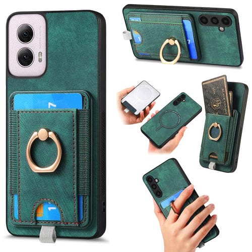 Funda de Cuero con Tarjetero Magnético Divisible para Motorola Moto G Power 2024 5G (Verde)