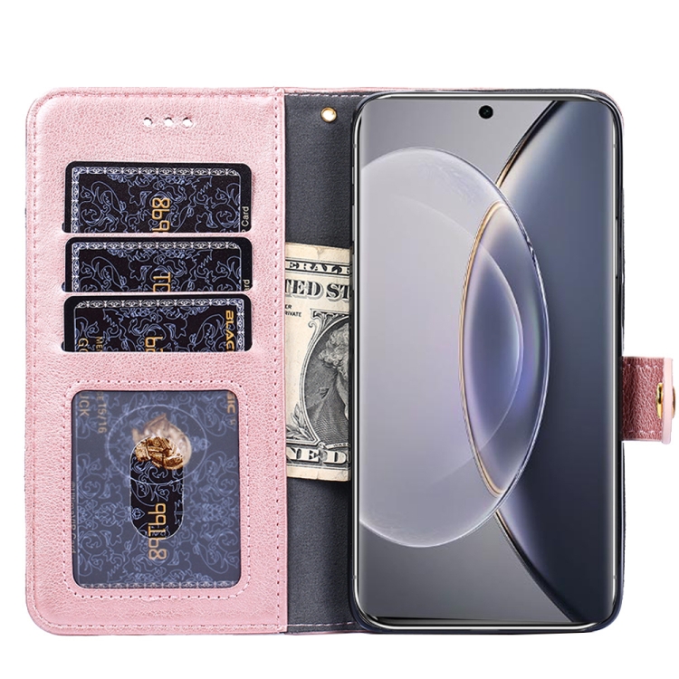 Funda de Cuero para Teléfono Vivo X90 Pro 5G con Cremallera (Oro Rosa)