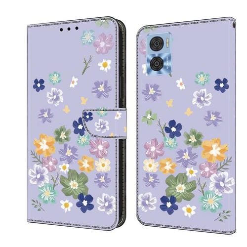 Funda de Cuero Pintada a Mano para Motorola Moto E22 (Floral Morado)