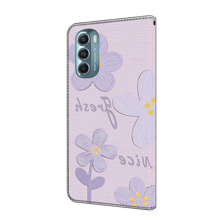 Funda de Cuero Pintada a Mano Motorola Moto G Stylus 5G (2022) Flores (Morado Oscuro)
