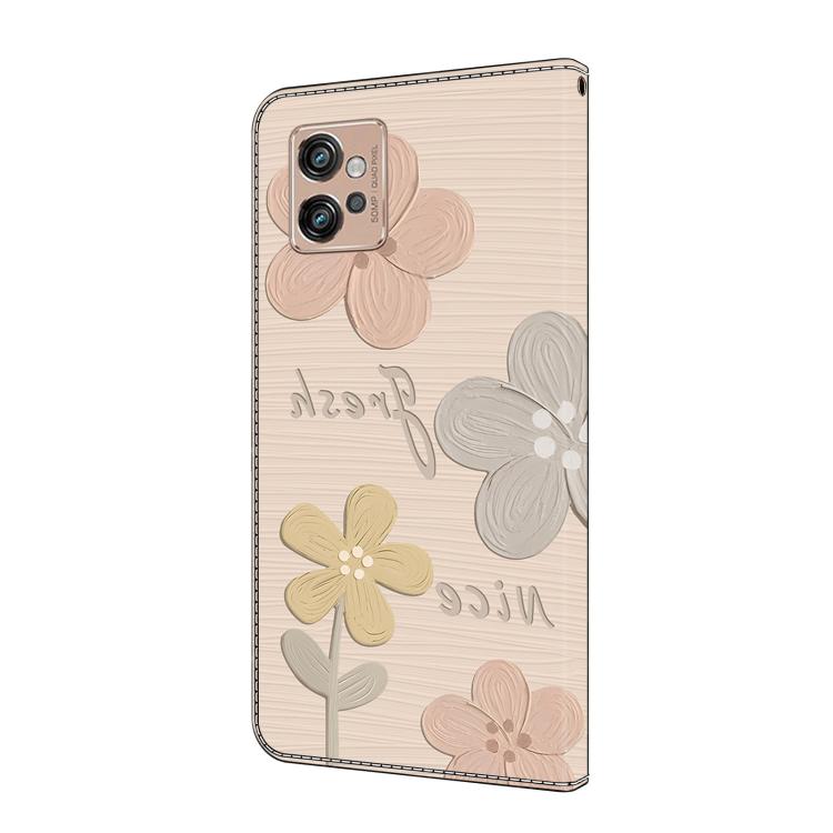 Funda de Cuero Pintada a Mano Motorola Moto G32 Protección (Flores Beige)
