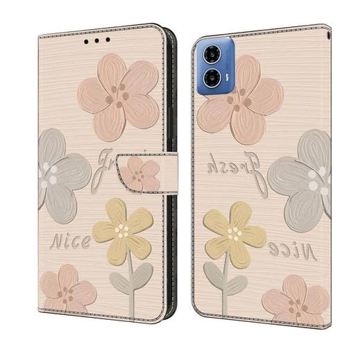 Funda de Cuero Pintada a Mano Motorola Moto G34 Protección (Flores Beige)