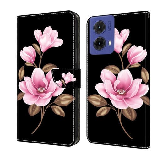 Funda de Cuero Pintada a Mano para Motorola Moto G85 (Flores Negras)