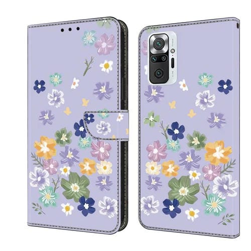 Funda de Cuero Pintada a Mano para Redmi Note 10 Pro 4G (Floral Morado)