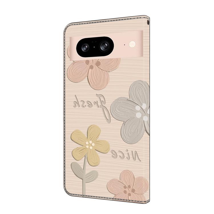 Funda de Cuero Pintada a Mano para Google Pixel 8 (Flores Beige)