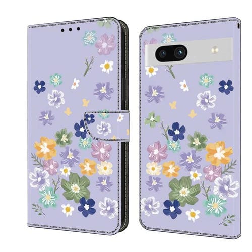 Funda de Cuero Pintada a Mano para Google Pixel 8A (Floral Morado)
