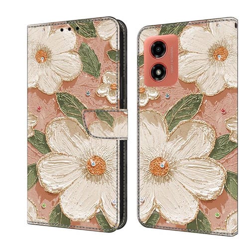 Funda de Cuero Pintada a Mano Motorola Moto E14 Protección (Girasol)
