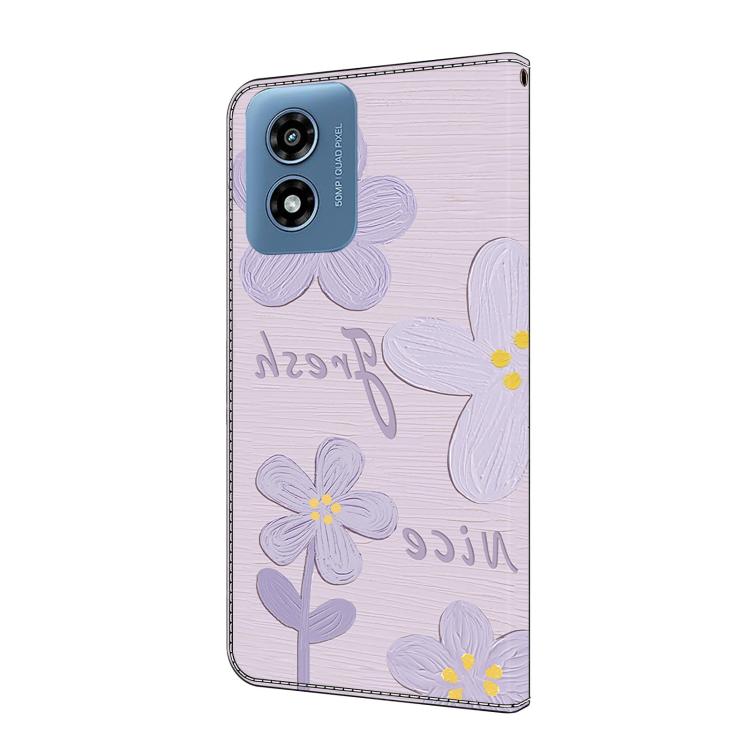 Funda de Cuero Pintada a Mano para Motorola Moto G Play 2024 (Flores Morado Oscuro)