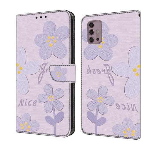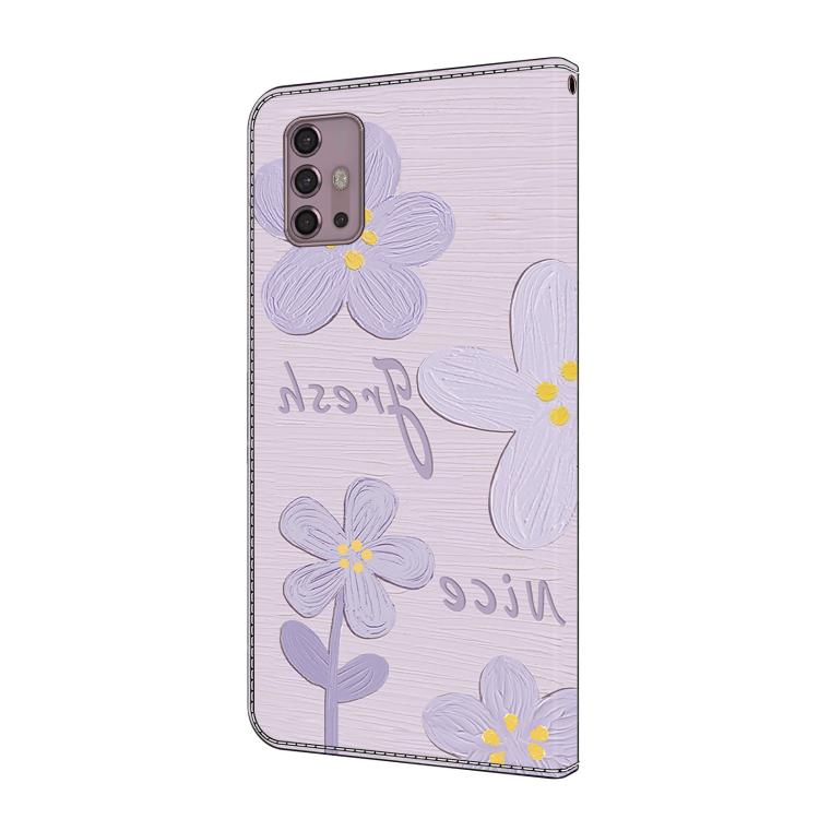 Funda de Cuero pintada a mano para Motorola Moto G30 con Flores (Morado Oscuro)